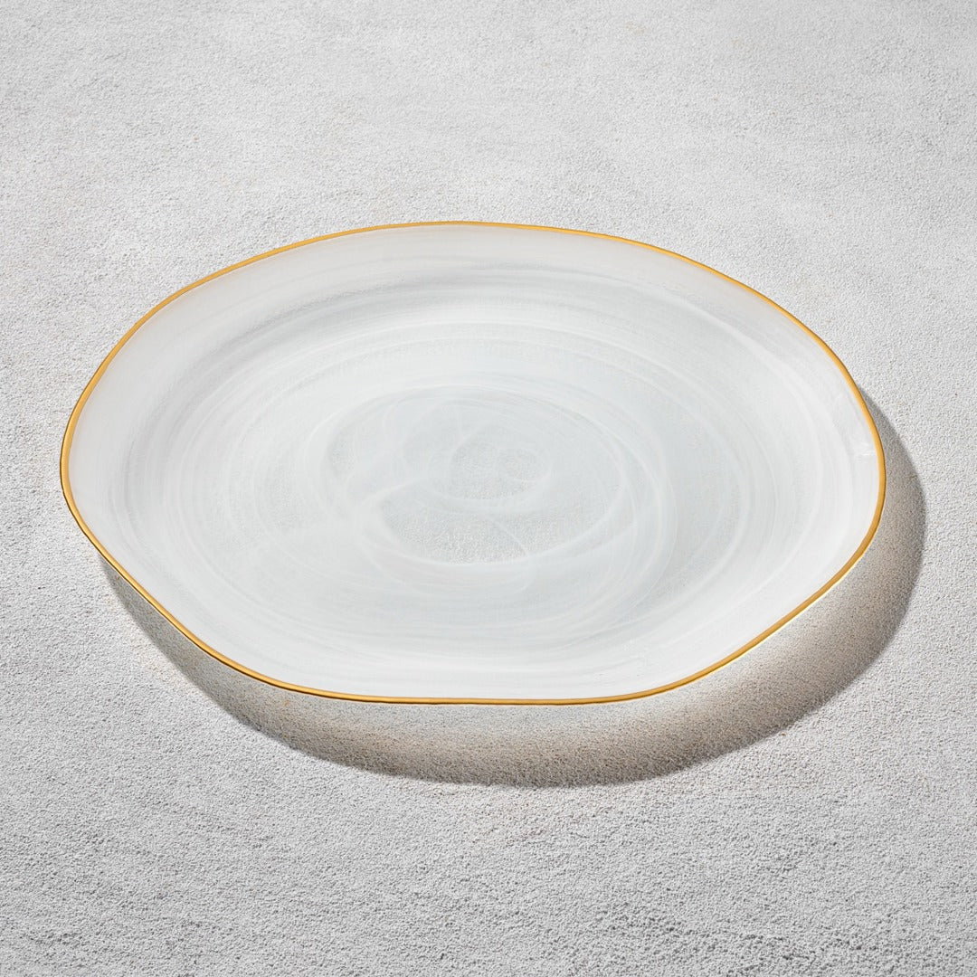 6PK VIKKO CEDAR GLASS CHARGER WHITE ALABASTER GOLD RIM13