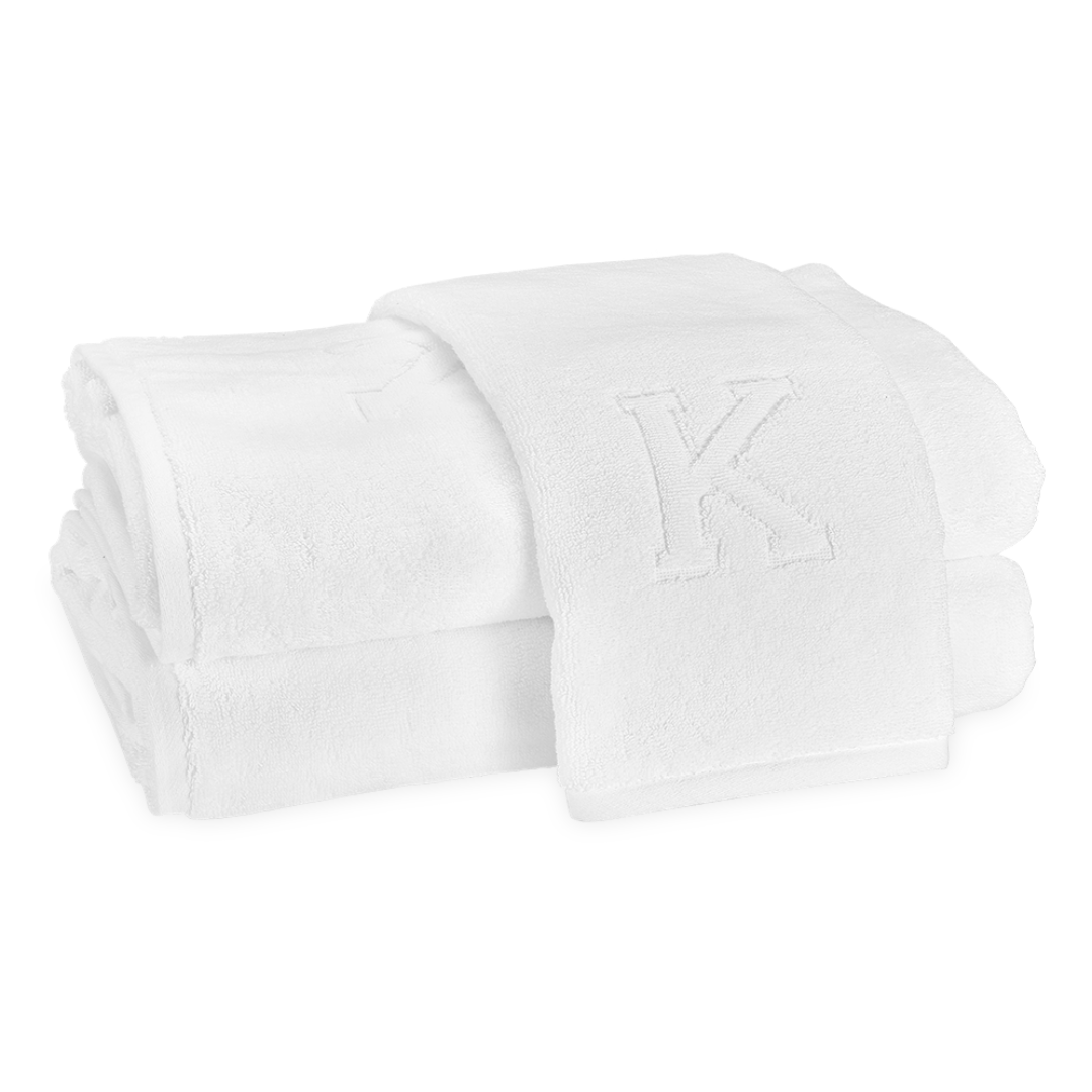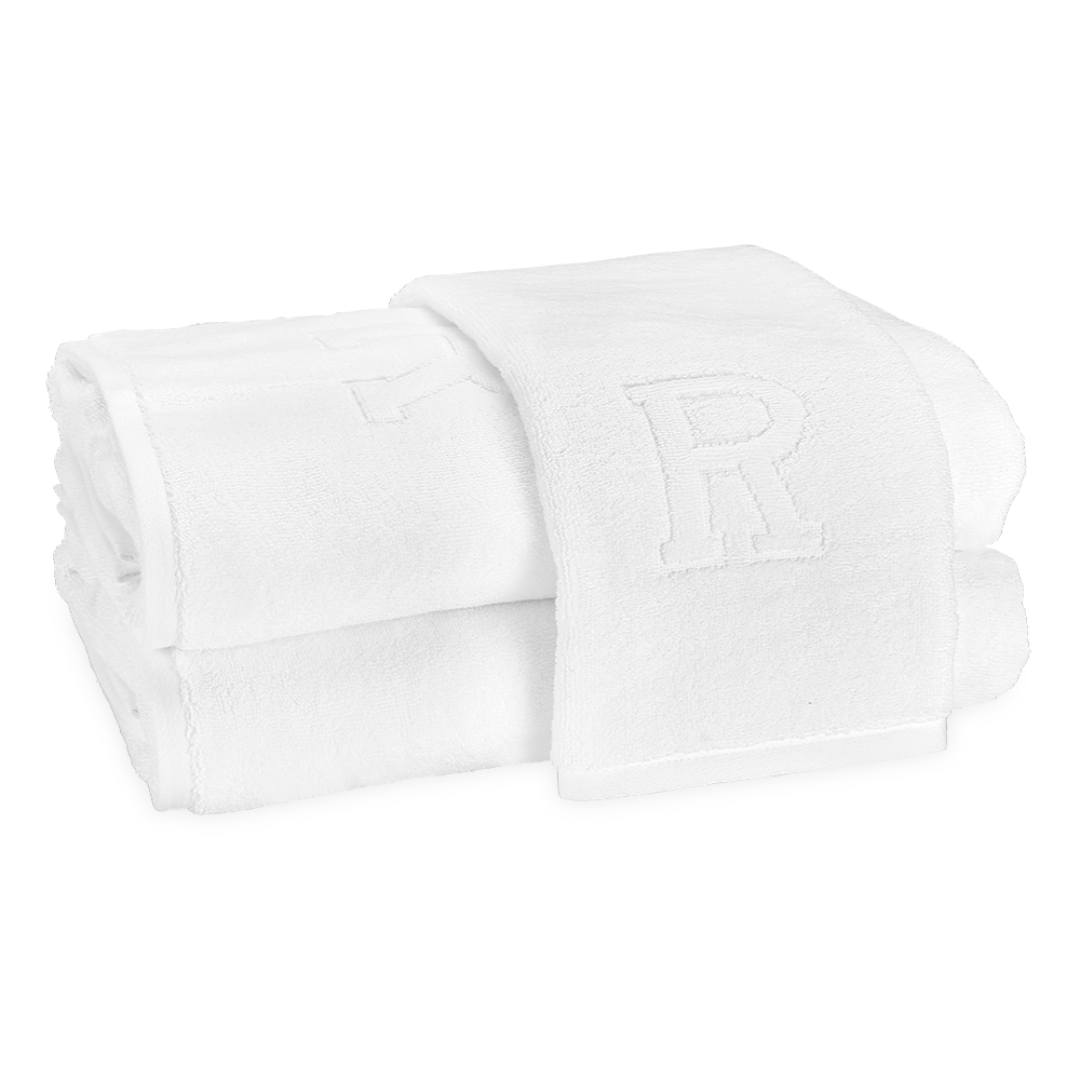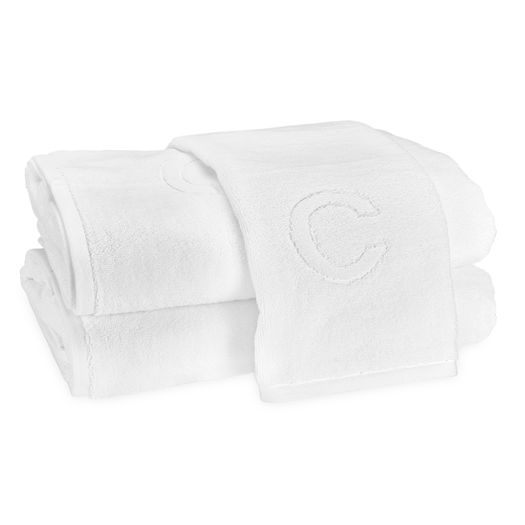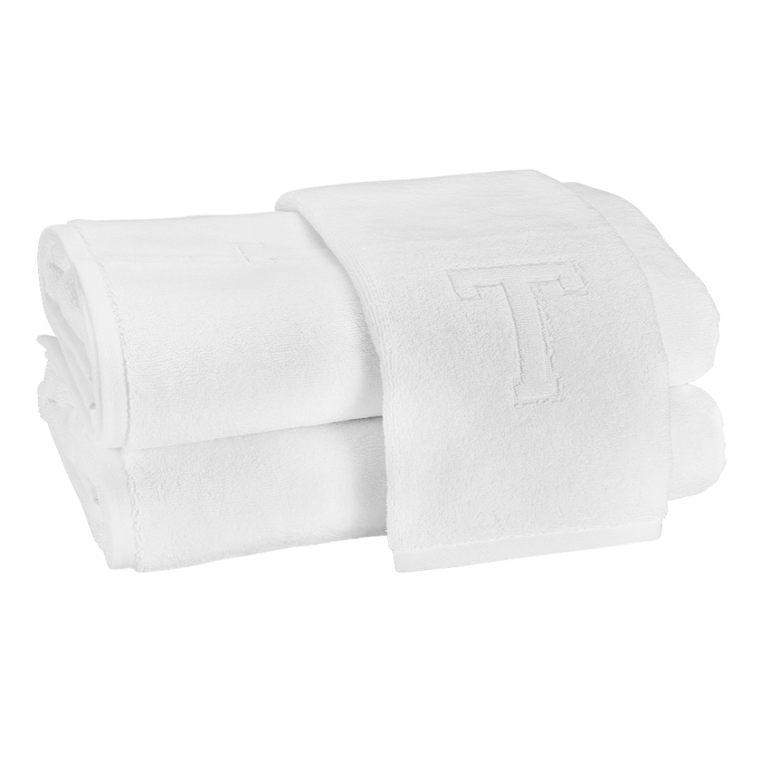 Auberge offers a simple yet striking alternative to monogramming, carefully crafting an uppercase letter in bold relief on soft, long-staple cotton terry towels. The collection completes a welcoming guest bath in style or makes a thoughtful gift for a new home.