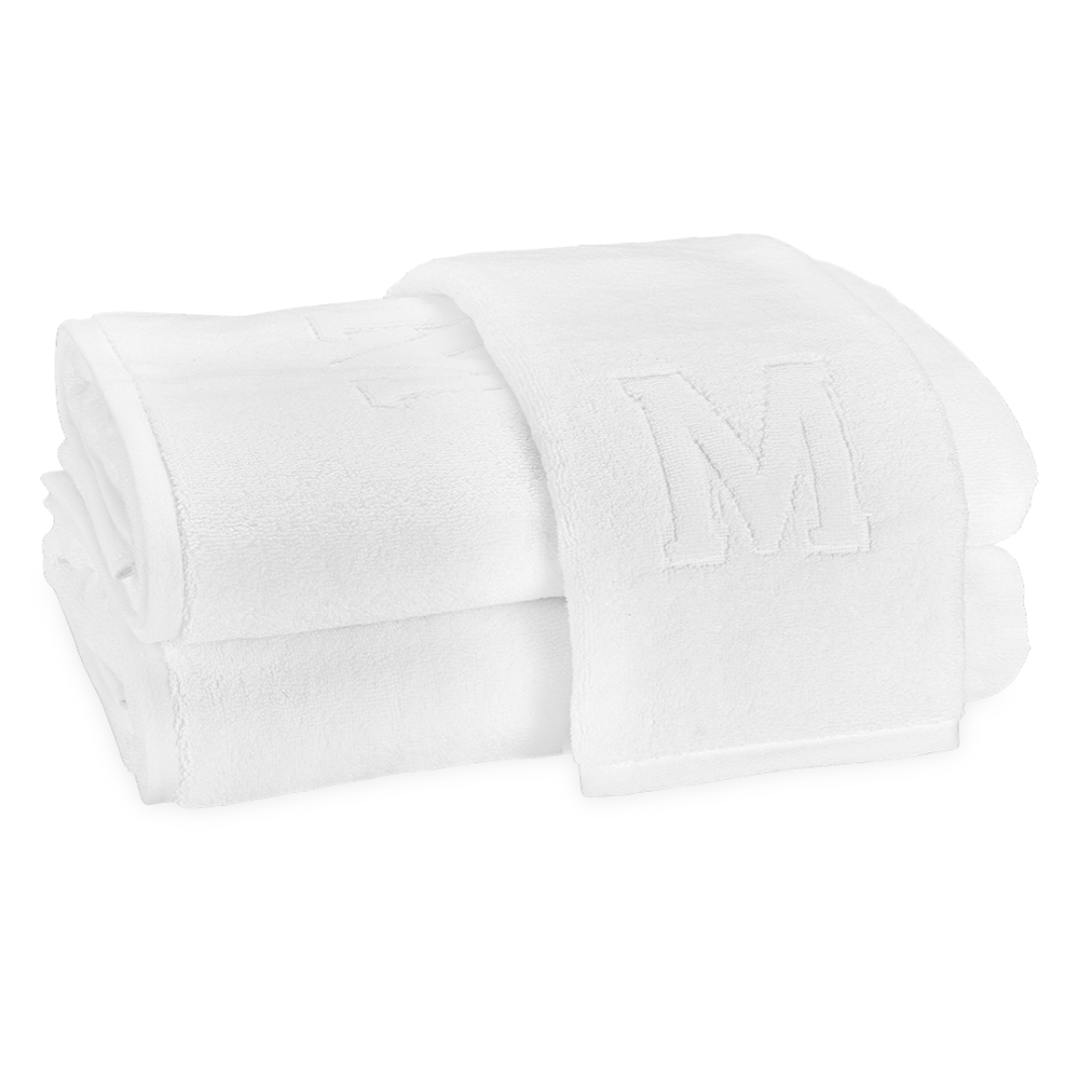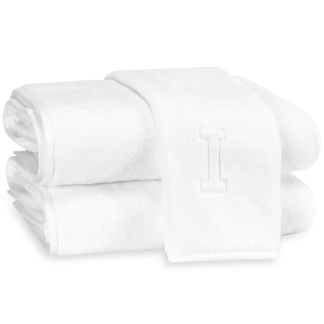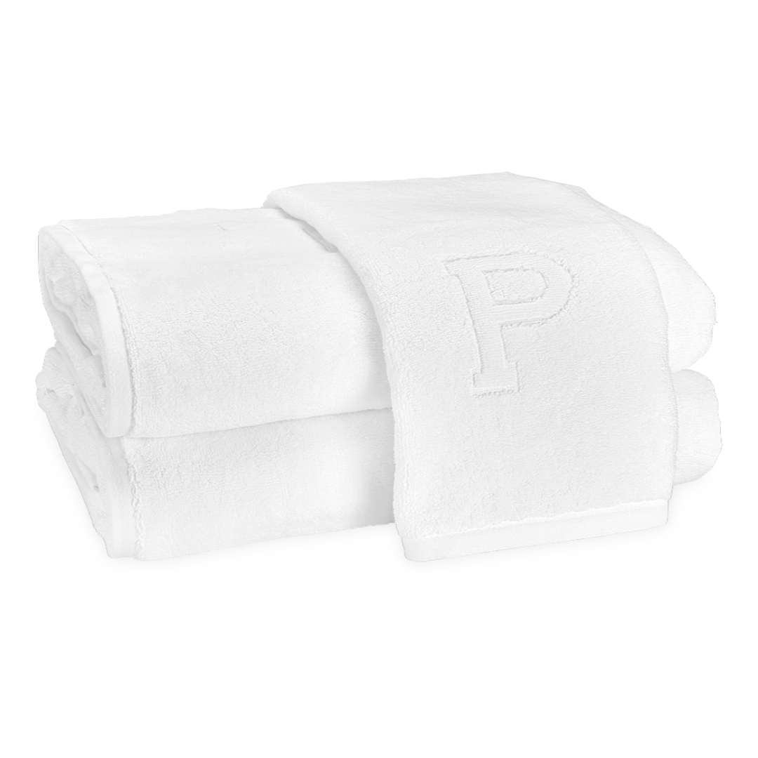 Auberge offers a simple yet striking alternative to monogramming, carefully crafting an uppercase letter in bold relief on soft, long-staple cotton terry towels. The collection completes a welcoming guest bath in style or makes a thoughtful gift for a new home.