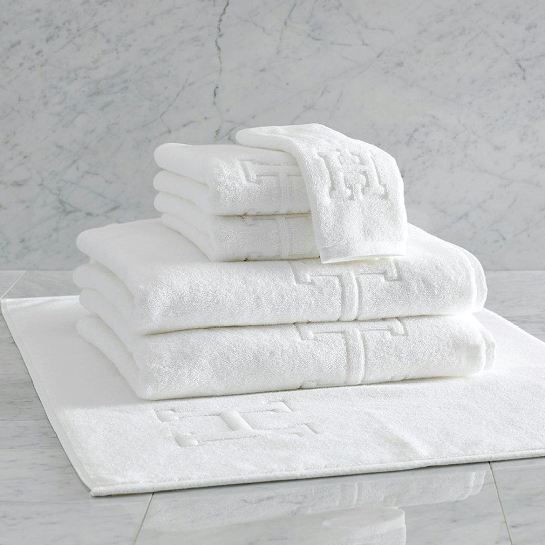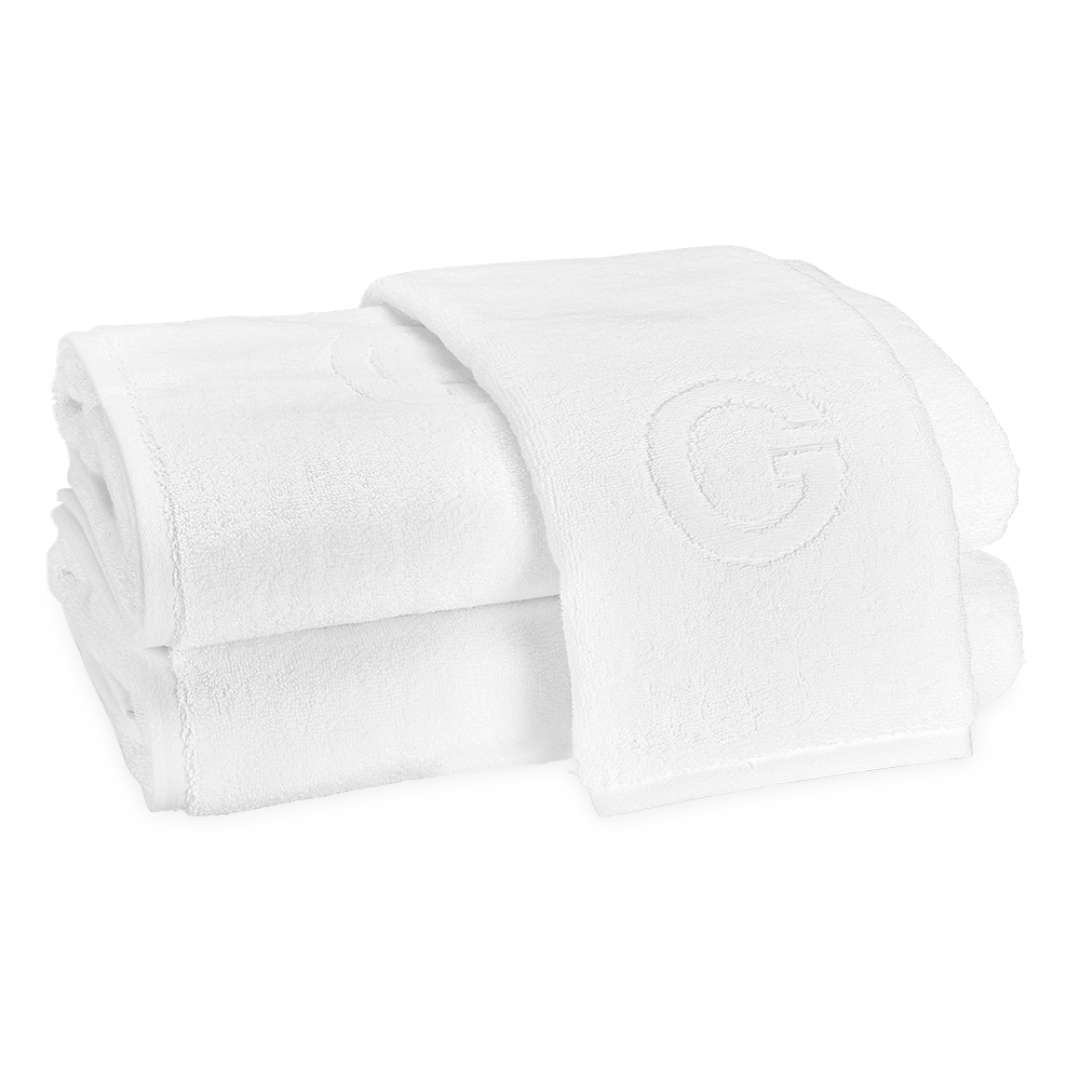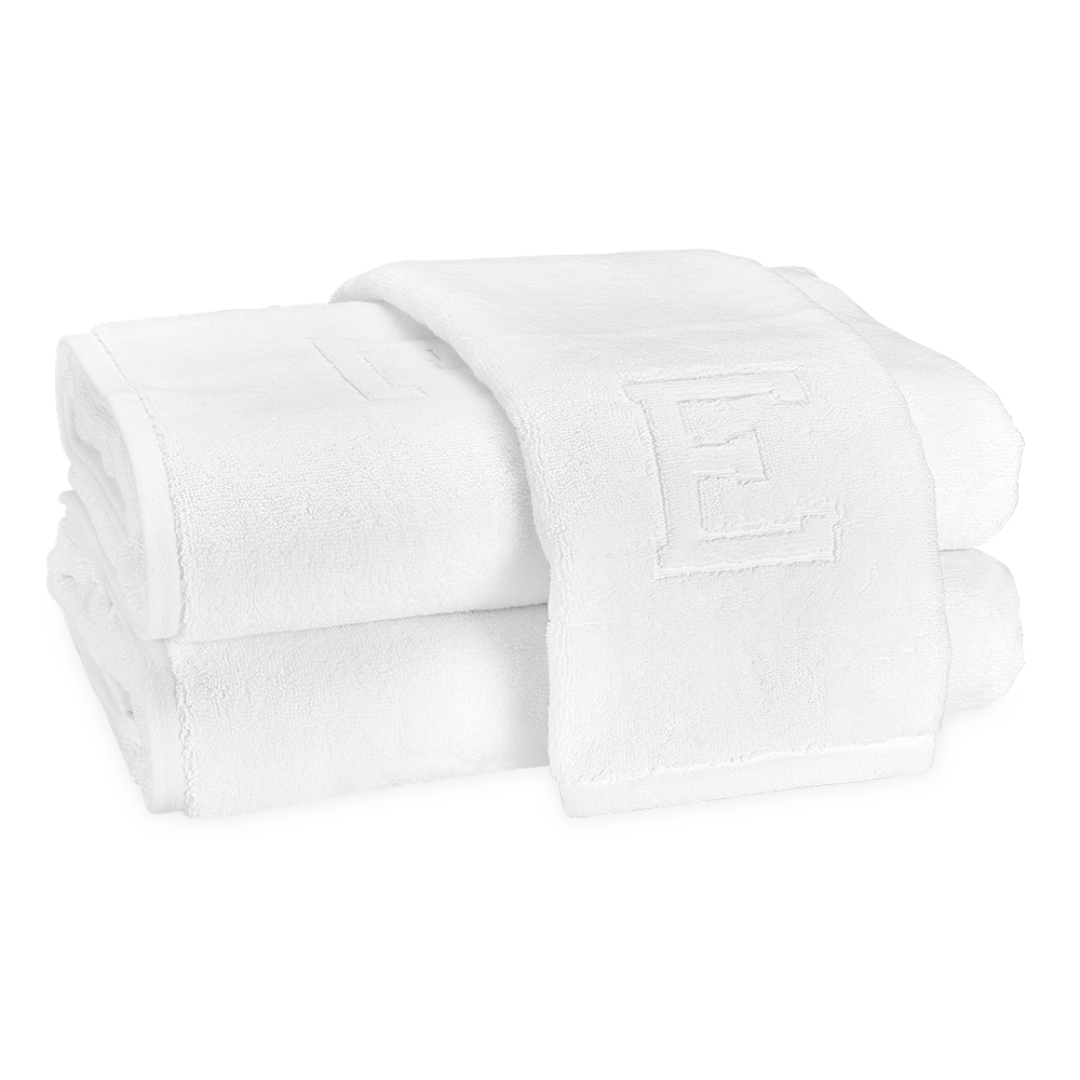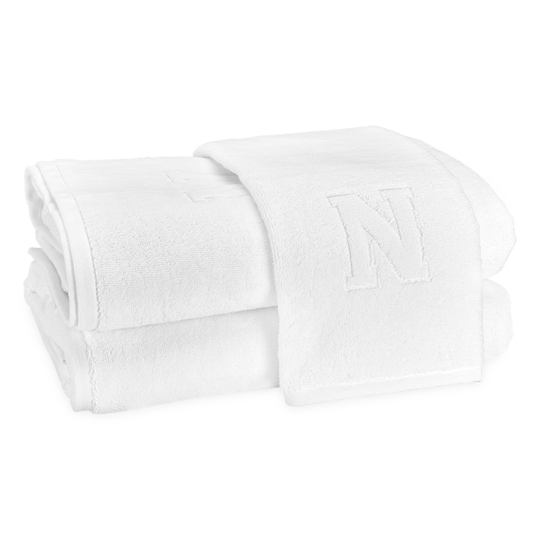 Auberge offers a simple yet striking alternative to monogramming, carefully crafting an uppercase letter in bold relief on soft, long-staple cotton terry towels. The collection completes a welcoming guest bath in style or makes a thoughtful gift for a new home.