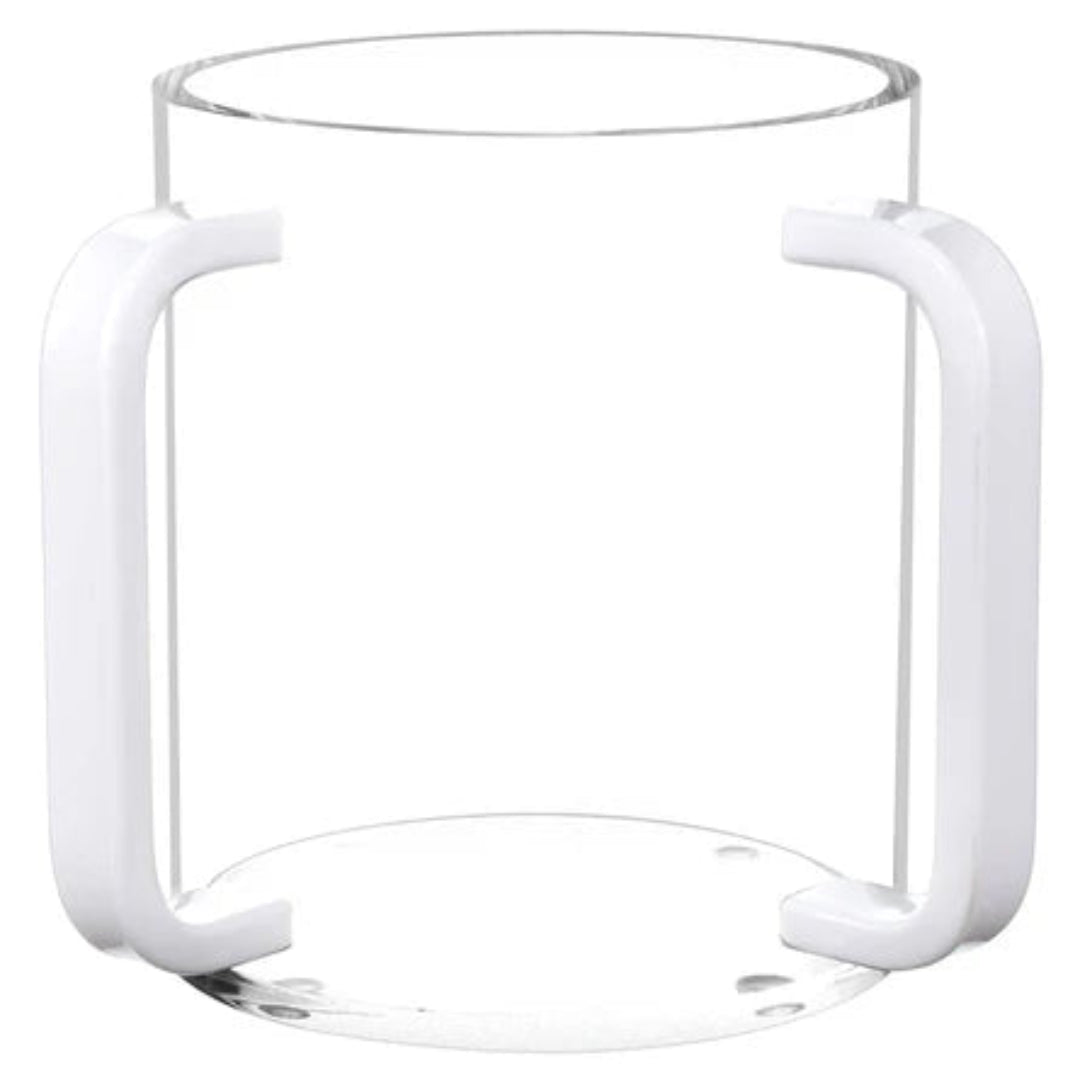 This modern clear acrylic wash cup with white handles will add an elegant flair to the kitchen/bathroom sink. Likewise a nice addition to the Seder table finery.