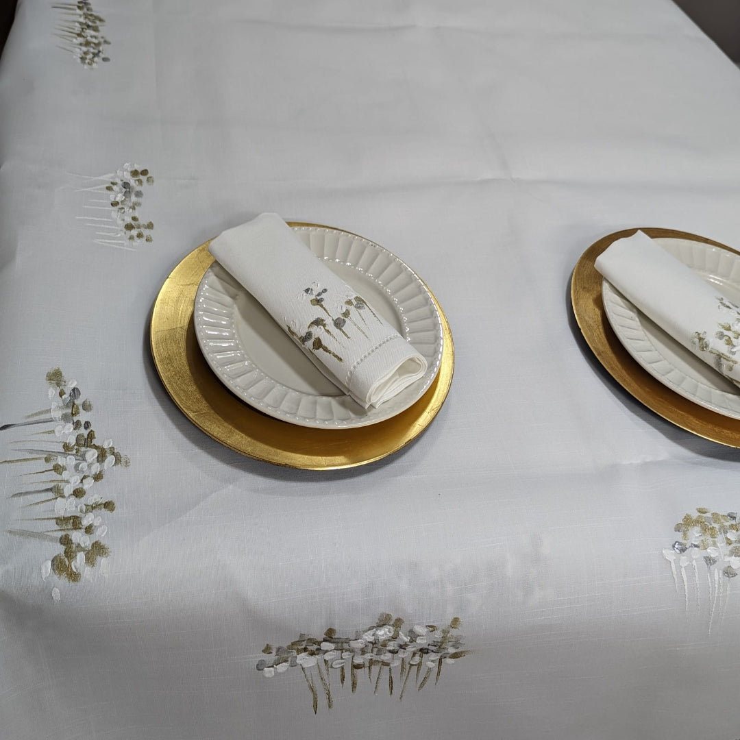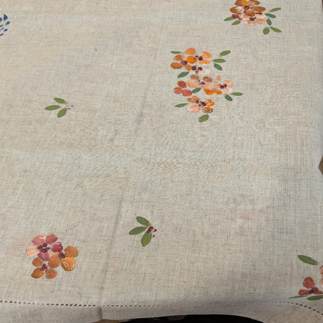 Each hand-painted tablecloth is crafted with care and attention to detail, featuring unique designs that bring elegance and artistry to any table setting. Every piece is individually painted, making each one truly one of a kind.