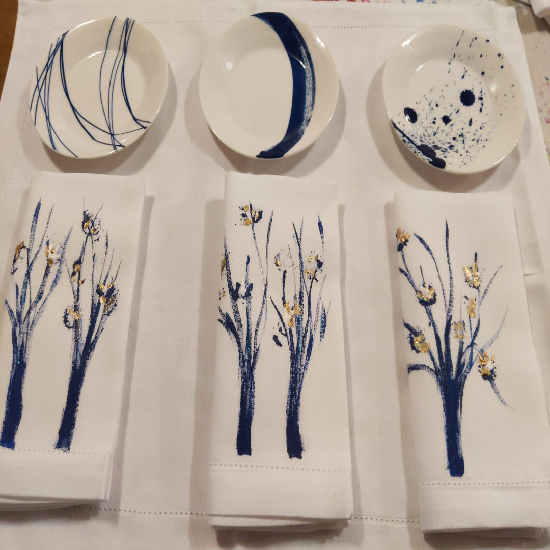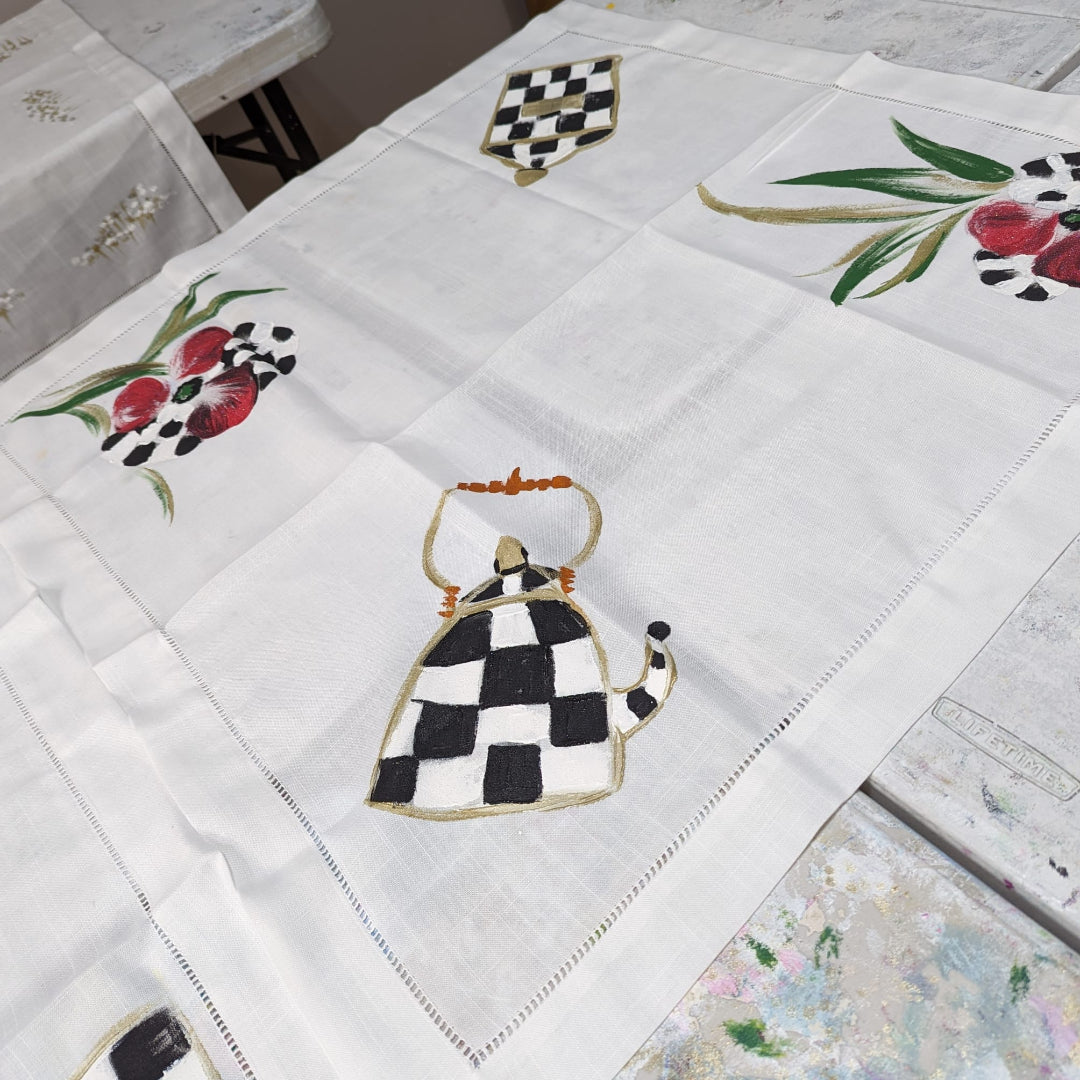 Each hand-painted tablecloth is crafted with care and attention to detail, featuring unique designs that bring elegance and artistry to any table setting. Made with high-quality fabric, every piece is individually painted, making each one truly one of a kind.